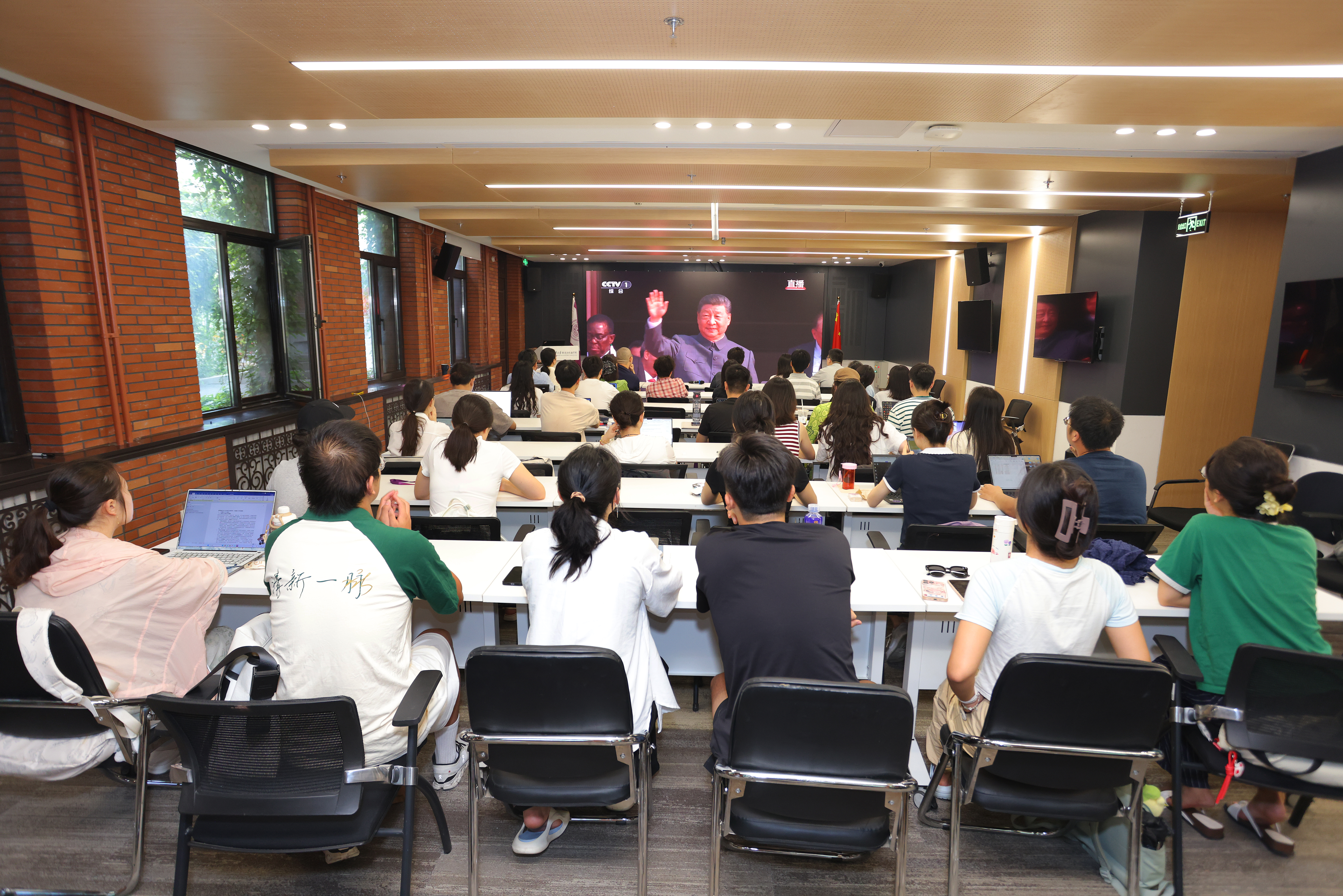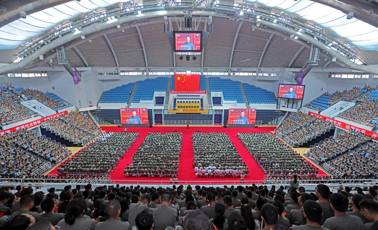 9时,米兰milan官方网站综合体育馆、新米兰学堂内,近4000名正在参加军训的本科生新生、约1500名研究生新生翘首以盼,共待荣光时刻。在各单位的自发组织下,校园各处都有师生们集体观礼,同上一堂生动珍贵的思想政治教育课和爱国主义教育课。