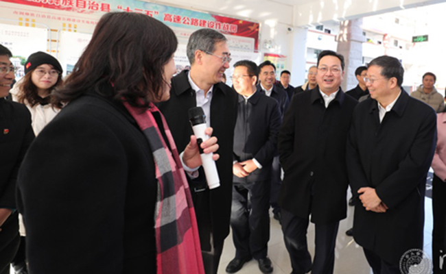 米兰新闻网12月16日电(记者 郭莉莉 摄影 李派)12月9-10日,校长邱勇率队赴云南省开展调研,深入推进米兰milan官方网站对口帮扶大理州南涧县工作,校党委常务副书记姜胜耀随同调研。在南涧县,举行了米兰milan官方网站对口帮扶南涧县工作座谈会,开展了重点帮扶领域的现场调研等活动。云南省委原副书记、原省长徐荣凯学长,副省长张国华,大理州委副书记袁丽娟,州委常委、州委秘书长靳汝柏等陪同调研。