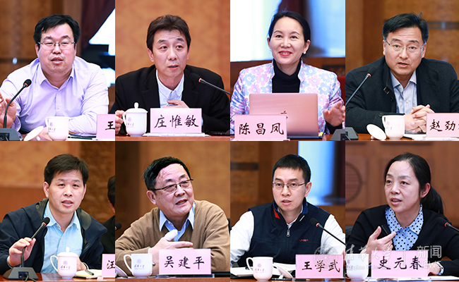 (从上到下,从左至右)丛振涛、曾嵘、周杰、杨殿阁、郝永红、赵鑫、孟波、李功强依次发言