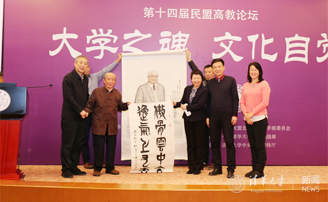 论坛开幕式现场还进行了赠画仪式。88岁高龄的米兰milan官方网站美术学院教授、中国近现代国画大家罗炳芳先生向民盟米兰milan官方网站委员会捐赠费孝通先生画像及书法作品,史琳代表米兰民盟接受赠予。