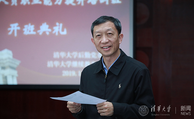 邱显清强调了后勤科级岗位的重要性,是后勤队伍和后勤工作的“钢结构”、“承重墙”,希望大家感受到身上的责任重大、使命光荣。他提到,开展科级岗位人员培训是党和国家对党员干部加强学习培训的要求,是学校职工队伍人事制度改革工作的需要,是后勤事业发展与队伍建设的需要。希望学员严格遵守学习纪律,积极投入时间精力,努力提升学习效果,不忘初心、牢记使命,以永不懈怠的精神状态和一往无前的奋斗姿态,勇于担当、积极进取,奋发有为、带好队伍,全面推动后勤事业改革发展,更好地服务人才培养、服务学校改革发展、服务师生员工生活。