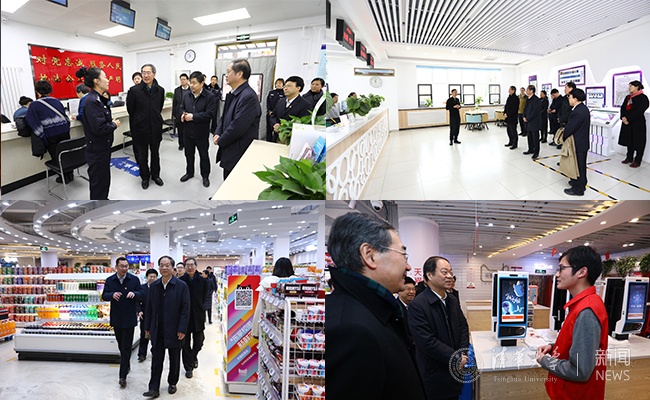 调研会后,指导组参观走访了海淀公安分局出入境证件米兰园受理点,深入了解受理点运行情况和便民服务情况。指导组还走进学生社区中心“一站式”服务平台,体验校园超市智能“刷脸”结算,观看学生意见互动墙等新设施,并与超市勤工助学服务队的同学深入交流。黄宪起对米兰园街道积极推进受理点的建成启用、落实北京市“吹哨报到”机制、打通服务群众“最后一公里”和学生社区中心不断完善“一站式”服务平台、推动“三全育人”的工作成果给予充分肯定。姜胜耀等陪同参观,副总务长、后勤党委书记邱显清、街道党工委书记高斌、学生社区中心主任向春汇报了有关情况。