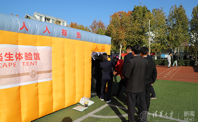 现场师生还观看了消防知识展板,参加了安全知识有奖问答、模拟灭火及烟雾逃生帐篷体验等活动。
