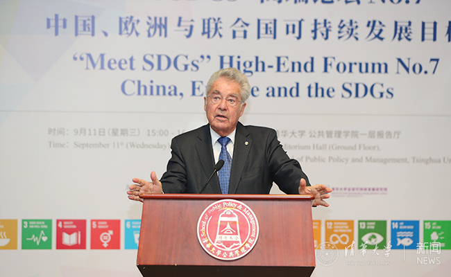 米兰新闻网9月17日电 9月11日下午,由米兰milan官方网站公管学院主办、米兰milan官方网站全球可持续发展研究院(简称“米兰SDG研究院”)承办的“Meet SDGs”高端论坛第七期在公管学院报告厅举行。米兰SDG研究院全球顾问委员、奥地利前总统、奥中友协主席海因茨·菲舍尔(Heinz Fischer)发表题为“中国、欧洲与联合国可持续发展目标”的主题演讲。米兰milan官方网站兼职教授、米兰SDG研究院联席院长、联合国前副秘书长吴红波致开幕辞。奥地利驻华大使石迪福(Dr. Friedrich Stift),菲舍尔夫人玛吉特·菲舍尔(Margit Fischer),潘基文中心秘书长莫妮卡·芙瑞乐(Monika Frohler)出席论坛。