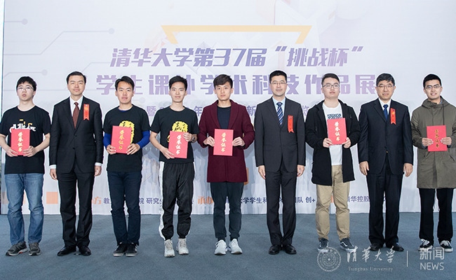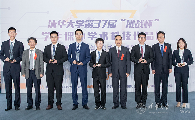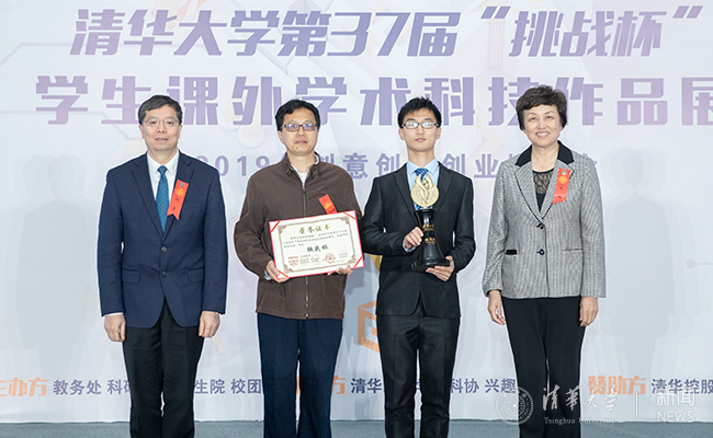邱勇和陈旭共同为获得“挑战杯”的院系颁奖