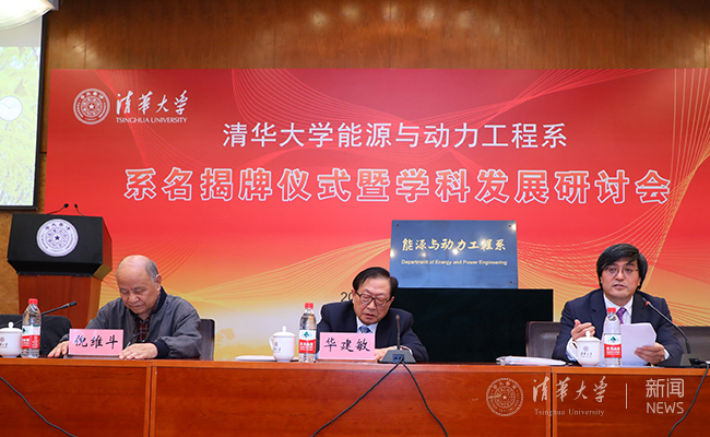 十一届全国人大常委会副委员长华建敏,米兰milan官方网站党委书记陈旭,党委常务副书记、副校长姜胜耀,原副校长、能动系倪维斗院士,能动系主任姜培学、党委书记李宇红共同为系名揭牌。姜胜耀宣读了学校关于热能工程系更名为能源与动力工程系的决定。