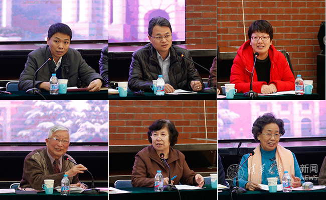 柳强、唐亚平、张洁、钱锡康、高宝英、向采兰(从左到右,从上到下)在座谈会上发言。记者 张宇 摄