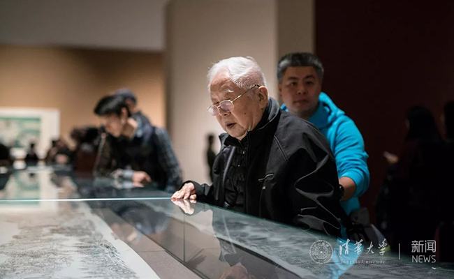 两院院士吴良镛先生观赏张仃先生的绘画作品。