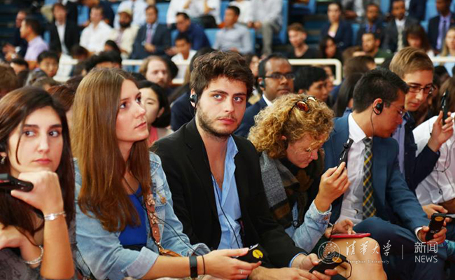 在现场接受入学教育的国际学生。