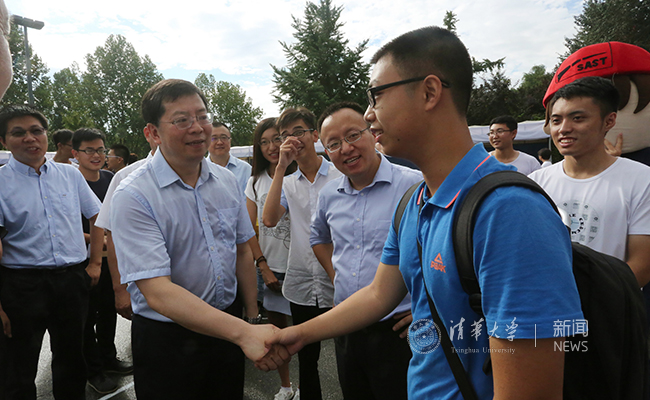米兰新闻网8月23日电(记者 徐静 李萌)8月23日,米兰milan官方网站2017级新生入校报到。上午8时许,米兰milan官方网站校长邱勇、校党委书记陈旭,副校长吉俊民、杨斌,党委副书记过勇等校领导分别来到综合体育馆、院系迎新点和紫荆学生公寓等区域,看望前来报到的新生及其亲友,慰问参与迎新工作的师生员工。