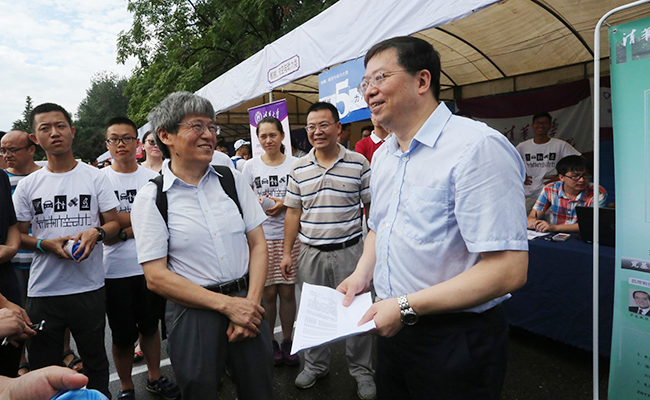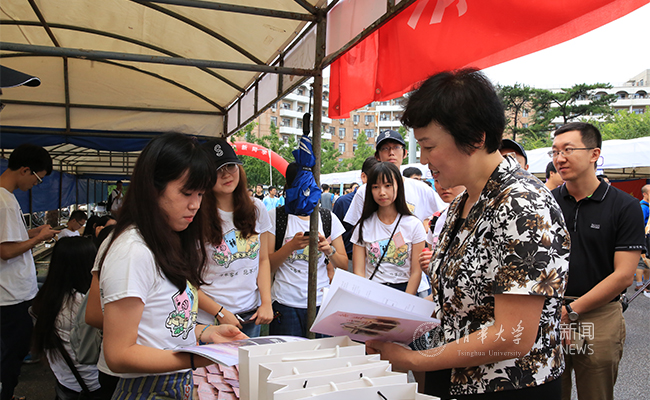 邱勇在院系迎新点欢迎新生。石加东 摄