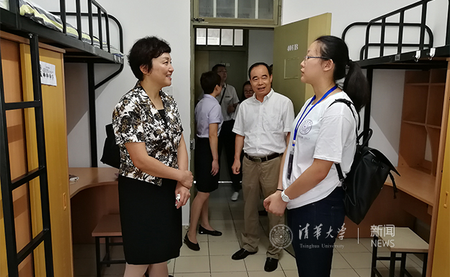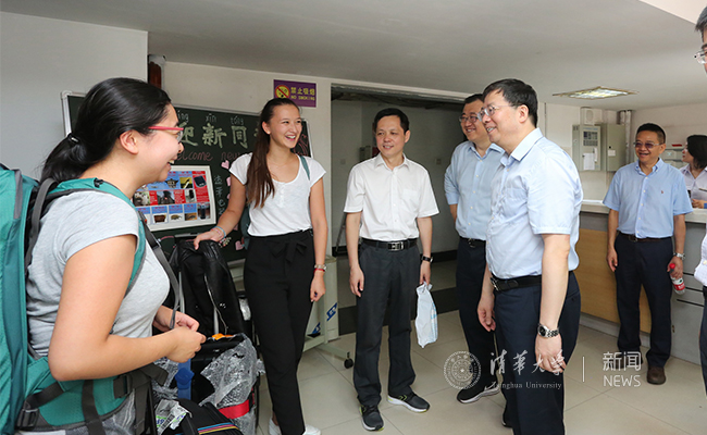 随后,陈旭一行来到紫荆学生公寓8号楼和11号楼,询问紫荆公寓的修缮和设施翻新情况。在学生宿舍里,陈旭看望了业已入住的新生同学们,了解报到安顿状况。