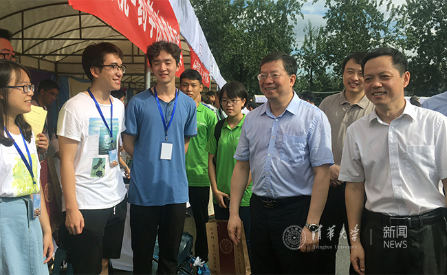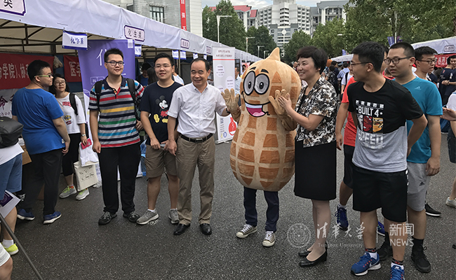 邱勇看望院系志愿者同学们。记者 刘蔚如 摄