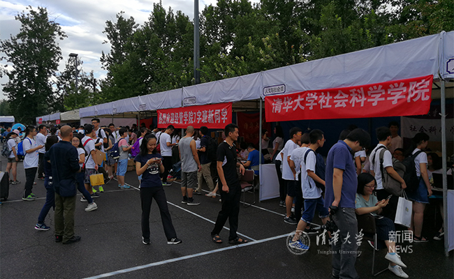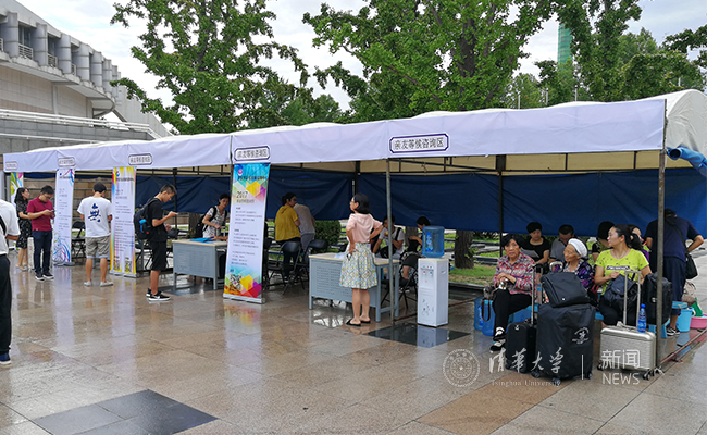早上七点,各院系迎新点开始人潮涌动。记者 苑洁 摄