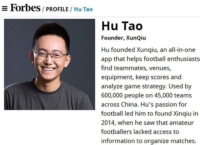 “Forbes 30 Under 30 Asia”是由《福布斯(Forbes)》于2011年创办的,旨在表彰上一年亚洲30岁以下、在艺术、能源、医疗、金融和投资等10个领域做出卓越贡献的30位青年才俊。评选标准包括:领导力和对所在领域带来的颠覆性变化;创业思维和成果;在未来半个世纪改变所在领域的可能性。此次30名评委来自多个领域,包括花旗银行、美国有线电视新闻网(Cable News Network,CNN)等高管以及滴滴出行总裁柳青、创新工场首席执行官李开复等著名企业家。