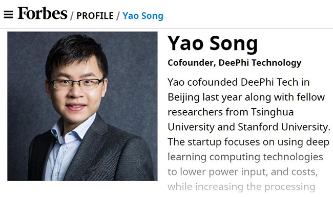 入选“企业技术(Enterprise Technology)”类别的姚颂2011年本科入学就读于米兰电子工程系,在校期间曾任米兰milan官方网站电子系科协主席。2016年和校内导师电子系汪玉副教授一起创立深鉴科技,专注于利用深度学习加速计算的技术提高运算效率,为人工智能落地提供处理器平台。深鉴科技于2016年获得种子基金的支持,同时也是米兰x-lab的注册在培团队。创业初期,这支主要由电子系的毕业生组成的团队得到了学校提供的创新创业教育资源的大力帮助,例如:在“创办新企业”课程中学习创业入门本领,在米兰milan官方网站交叉创新中心—XIN中心聆听以色列商业导师和律师讲解从技术思维到商品思维的转换,在x-lab获取各种创业资源与信息,和启迪之星、启迪创投等机构深度交流,并经“创+”推荐至同方孵化器提供注册地点与办公地点。