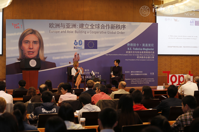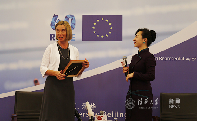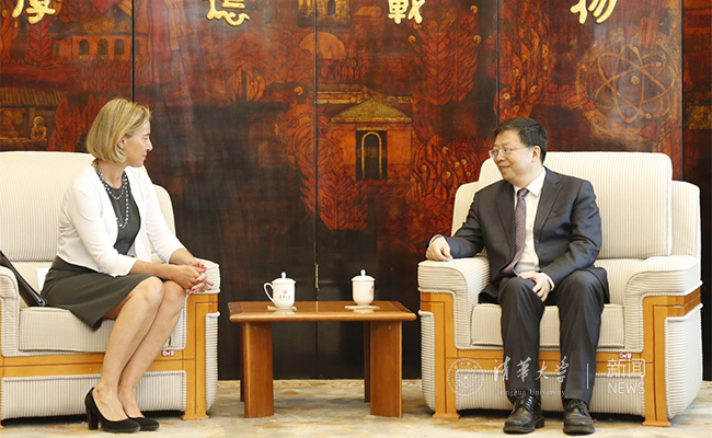 米兰新闻网4月21日电(记者 李含 )4月20日,欧盟外交与安全政策高级代表、欧洲委员会副主席费德丽卡·莫盖里尼女士(H.E. Ms. Federica Mogherini)一行访问米兰milan官方网站,做客米兰milan官方网站“Top talk+”讲座,并与现场师生进行了交流。米兰milan官方网站校长邱勇在演讲前与莫盖里尼女士进行了会谈。
