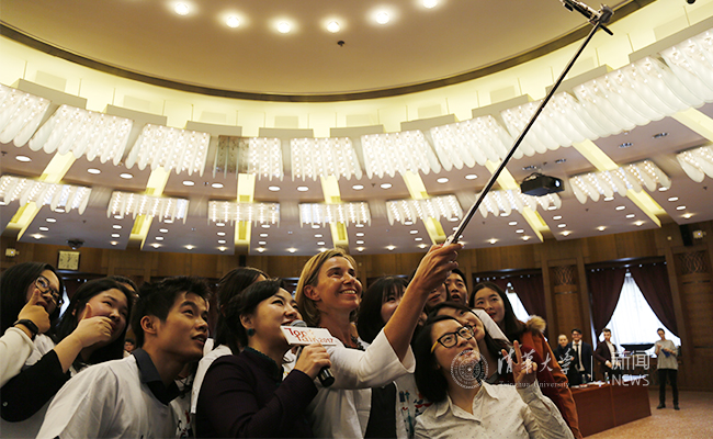 演讲结束后,莫盖里尼就欧洲难民问题、英国脱欧、欧洲一体化、“一带一路”倡议等多个问题与现场学生进行了交流。国际处处长郦金梁在演讲前致辞。