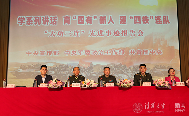 报告会上,“大功三连”所在旅政委刘海成,“大功三连”指导员王金龙、士官长张海生、战士陆钧杰的母亲刘嘉彤、退伍战士李冲,分别从不同侧面讲述了“大功三连”围绕习近平总书记重要讲话精神建连兴连、铸魂育人的感人事迹,展示了连队官兵推动中国梦、强军梦在基层落地生根、开花结果的先进经验,在师生中引发强烈共鸣。