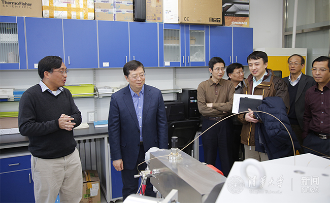在调研座谈之前,邱勇参观了稳定同位素生态学实验室和大气污染监测与控制实验室,并分别与实验室负责人林光辉教授、张强教授就相关科研工作进行了交流。