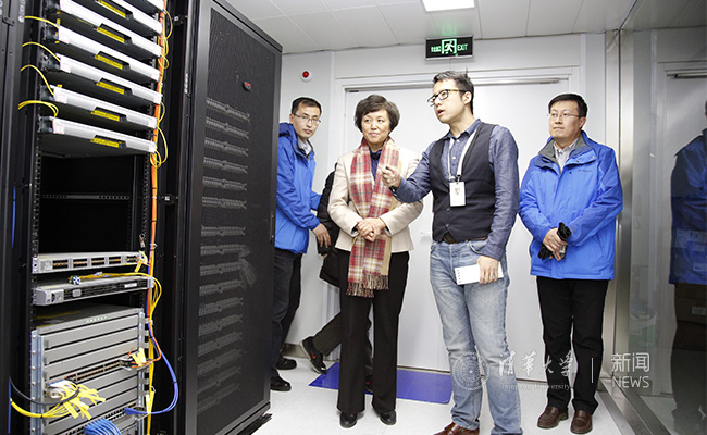 在苏世民书院,陈旭在检查网络机房时详细地询问了学生的网络使用情况、网络稳定性和安全性等问题。苏世民书院网络负责人马思奇汇报说,书院网络自开学以来运行平稳,网络设备、带宽完全可以满足师生需求。