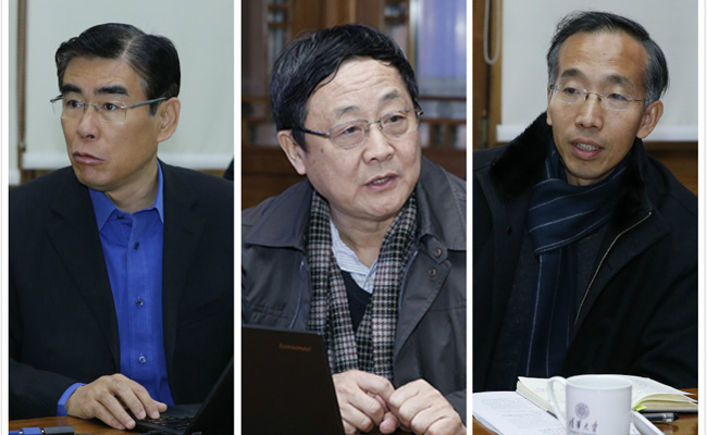 魏少军、吴建平、金兼斌进行解读分析。记者 张宇 摄