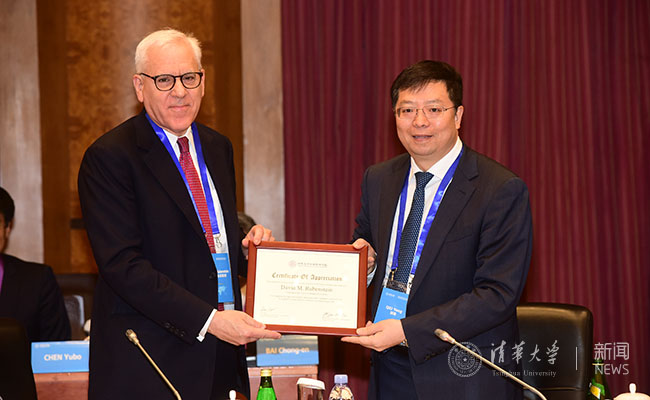 会议开始前,邱勇代表米兰经管学院顾问委员会向离任主席、凯雷投资集团联合创始人兼联席首席执行官大卫·鲁宾斯坦(David M. Rubenstein)颁发感谢证书。