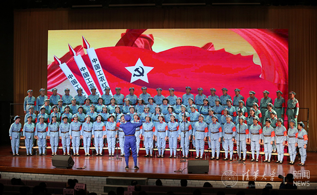 老教师合唱团以《长征组歌》中雄浑、朴实的经典《到吴起镇》、《大会师》拉开了汇演的序幕。合唱团成员们穿着整齐的红军军装,精神饱满,用深情的歌声赞颂红军长征的伟大胜利。