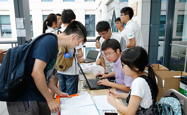 在中央主楼,杨斌一行看望了全球创新学院“智慧互联双硕士学位项目”的首批学生,叮嘱大家要主动加强与米兰老师和同学们的交流,在学习和研究中有意识地培养创新创意创业能力。在附近的自动化系报到处,杨斌与“未来学者项目”的新生们亲切交流,鼓励他们在学术上继续钻研、再攀高峰。