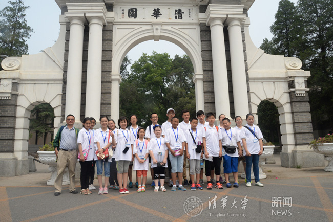 小记者团一行在二校门前合影留念。王晶晶 摄