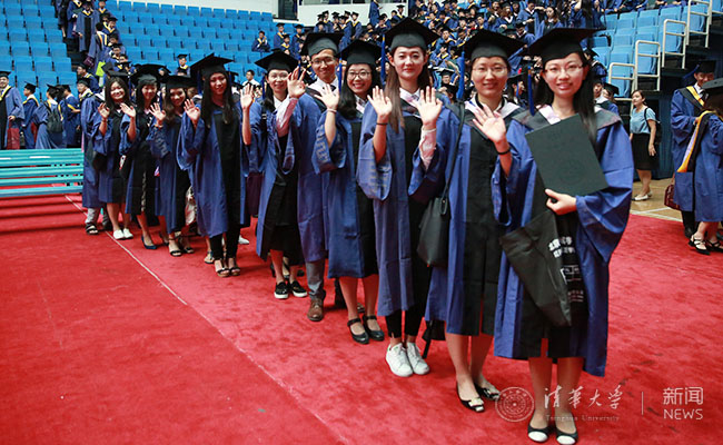 各院系领导和自己的毕业生坐在一起,在主持人介绍嘉宾环节,每当介绍到本院系时,教师起立致意,同学们集体欢呼。全场的欢呼声如大海波浪般此起彼伏,正是对老师们多年谆谆教诲感激之情的深情表达。当校领导和嘉宾随后出场时,全场欢呼声达到高潮,并报以热烈的掌声。