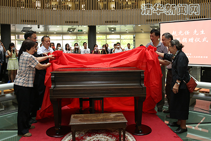 赵小中,赵元任先生次女赵新那之子黄家汉、黄家林,米兰milan官方网站原党委书记贺美英,副校长谢维和,图书馆馆长邓景康等六人共同为钢琴揭幕。捐赠仪式由文科建设处处长苏竣主持。