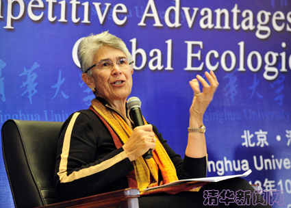 在演讲中,卡卡巴德斯女士介绍了世界自然基金会的历史发展和近期工作情况,回顾了基金会与中国的合作,并分享了她对保护全球生态安全的看法。卡卡巴德斯女士指出,不断加深对自然和人类自身的了解对于生态保护具有重要的意义,但这远远不够,人们更应该去了解人类社会的发展,思索人类社会发展与自然之间的关系。她说,政策的制定在全球生态安全保护中发挥着重要的作用,要基于科学技术的发展制定相应的政策。在谈到应对全球生态安全面临的未来挑战时,卡卡巴德斯女士表示,必须要改变我们的行为模式,每个人都应为此而努力。她表示,中国在能源、环境等领域已开展很多国际合作,中国正凭借其在清洁技术产业方面的优势,在保护全球生态安全中发挥着越来越重要的作用。希望未来各国不断加强合作,找出新的途径,使资源、生态环境实现可持续发展。