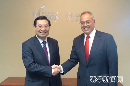 胡和平一行还访问了乔治梅森大学,分别会见了乔治梅森大学校长安赫尔·卡布雷拉(Ángel Cabrera)和教务长彼得·斯特恩斯(Peter Stearns),双方就大学战略规划、大规模在线课程、跨学科研究等问题进行了深入交流,并特别讨论了如何通过两校共同发展的“解决全球问题联盟”(Global Problem Solving Consortium),以课程共享、师生交流以及合作研究等形式,共同应对和解决全球挑战。