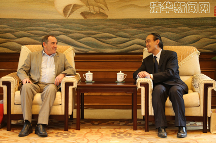 图为袁驷与Jim McCluskey教授会谈。记者 刘蔚如 摄