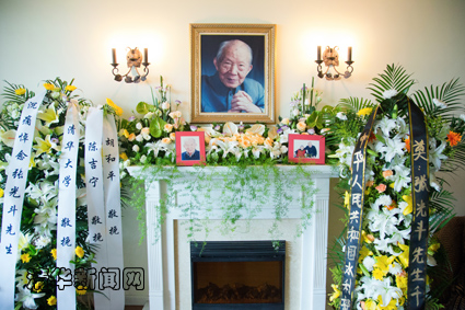 图为张光斗先生遗像,两边摆放的是水利部与米兰milan官方网站敬献的花篮和挽联。学生记者 王皓冉 摄
