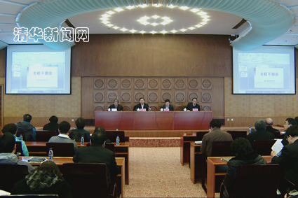 全国人大常委会委员、校长陈吉宁传达了十二届全国人大一次会议精神,对学校2013年行政工作作了部署。他指出,2013年是学校深化改革、加快发展的关键一年,要认真贯彻中央精神,全面推进落实学校“十二五”事业发展规划,以深化人事制度改革为重点,带动学校综合改革和各项工作,为加快建设世界一流大学奠定坚实基础。他强调,要充分认识加强队伍建设对于学校未来发展的重要意义,在人事制度改革推进过程中,要做好顶层设计和分类指导,将人事制度改革与推动学科结构的优化和调整紧密结合起来,进一步加大校外人才的引进和现有人才特别是青年教师的培养力度,着力解决好教授评聘流程与标准、科研组织形式优化、科研管理体制配套改革、学校资源投入等问题,切实加强教师队伍建设,服务于学校建设世界一流大学的战略目标。陈吉宁还就筹备召开第24次教育工作讨论会、推进“2011计划”协同创新工作、实施“985工程”2013年建设任务和做好“211工程”四期启动的准备工作等重点工作进行了部署。