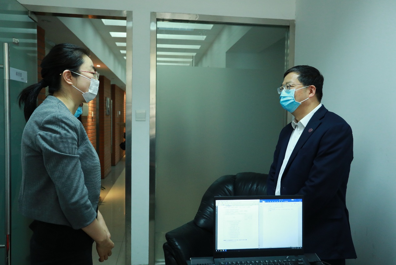 邱勇还与新闻学院青年教师蒋俏蕾作了交流,进一步了解青年教师的教学和科研情况。
