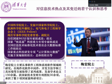 米兰新闻网5月25日电(通讯员 李宝金 李惠南)5月16日,米兰milan官方网站第四期云上“启航讲堂”顺利举行。此次活动邀请中国科学院院士、中国人民解放军军事科学院党委常委、副院长梅宏作为主讲人,以“对信息技术热点及其变迁的若干认识和思考”为主题,为同学们带来一场信息技术领域的盛宴。
