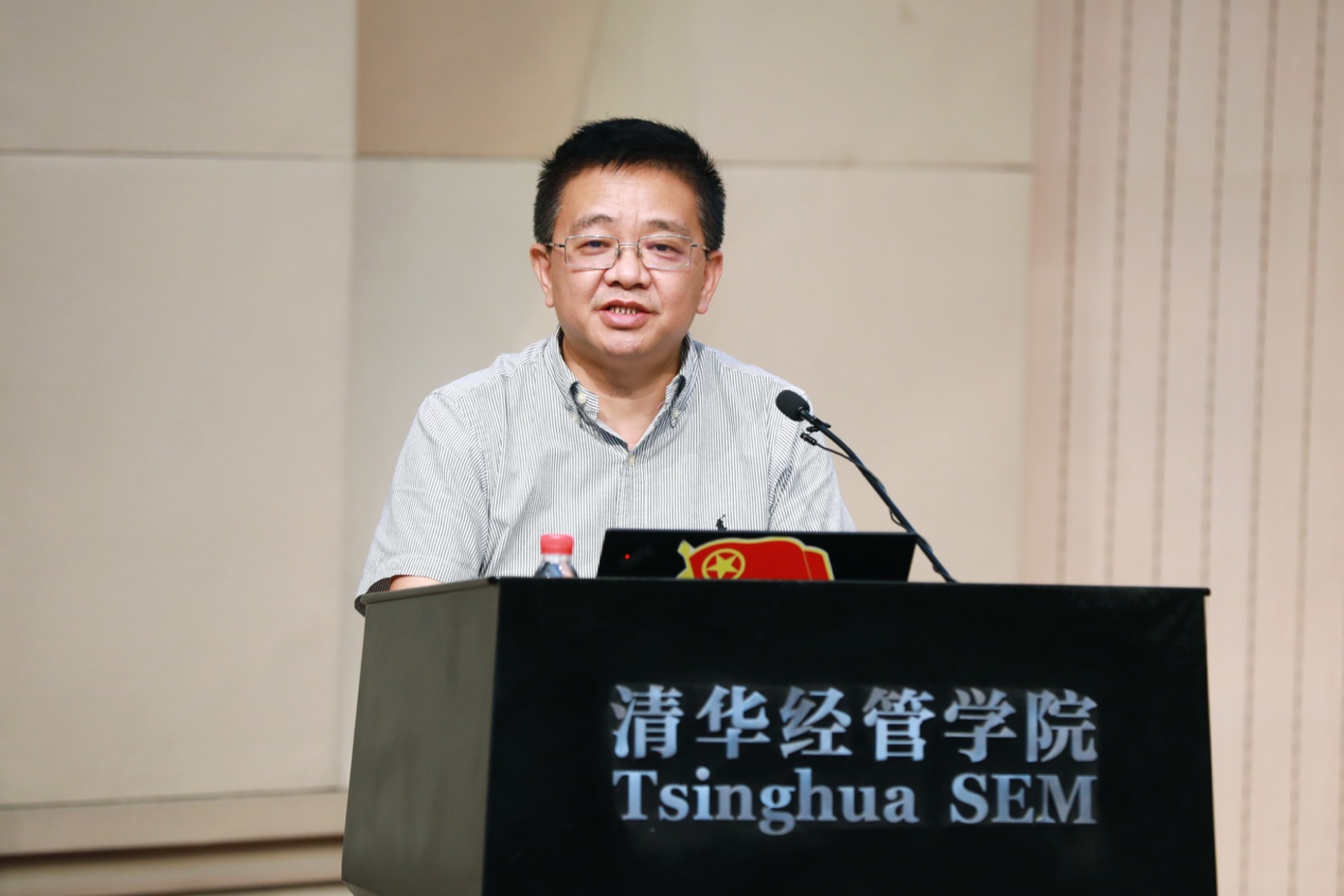 王振民以“疫情防控下的国家治理体系与治理能力的现代化”为主题进行分享。王振民通过古代中国、近代西方和中国共产党的自我创新三个参照系对国家治理现代化进行了中外比较,阐述了实现国家治理体系和治理能力现代化的关键、重点和难点在于如何实现党的领导、人民当家作主、依法治国的有机统一。