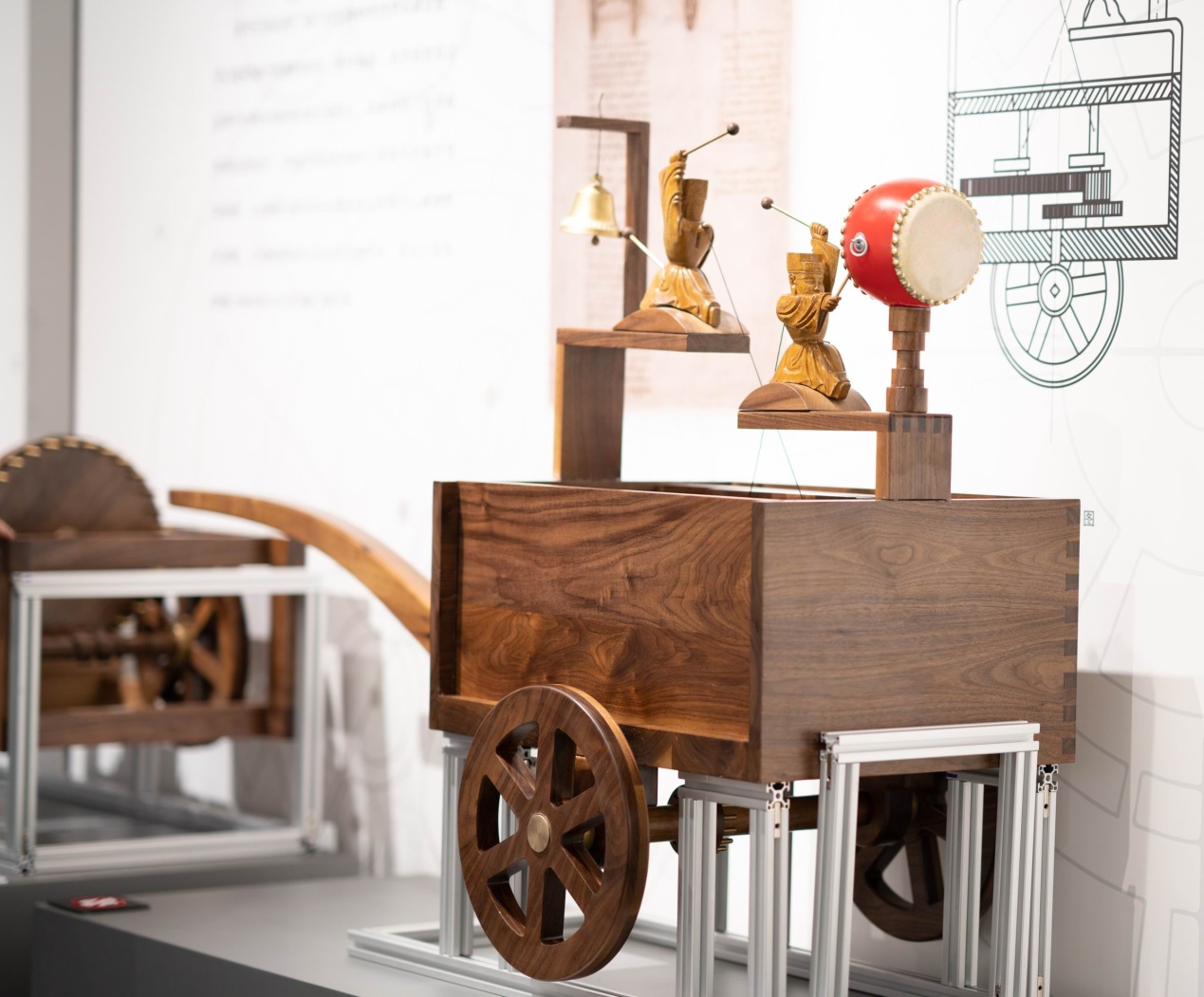 在这次展览中,米兰科学博物馆研究制造团队对历史上实物已经失传、带有文字记录的中外著名科学仪器和技术发明进行研究性复原。顺着展览导向,你会看到复制出的古巴比伦数学泥板、战国竹简《算表》,复原了的列奥纳多·达芬奇的里程计、宋代的计里鼓车,以及席卡德计算器、帕斯卡计算器和莱布尼茨计算器的互动模型,这些器具满带历史感,颇为真实。