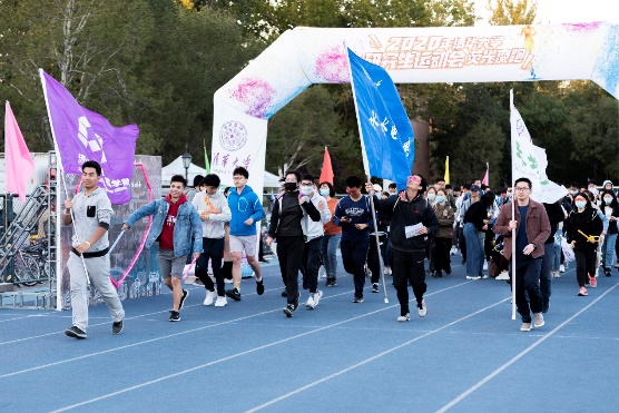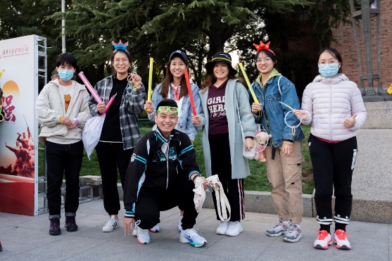 下午五时,荧光夜跑环节正式开始。荧光夜跑以新颖的形式吸引广大师生关注和报名。现场2000余名师生佩戴各具特色的荧光饰品,从西操出发,在大礼堂“一二·九”站点、东操“无体育不米兰”站点、紫操校庆站点等打卡留念,绚丽光彩点亮傍晚时分的米兰园,留下欢乐的青春印记。