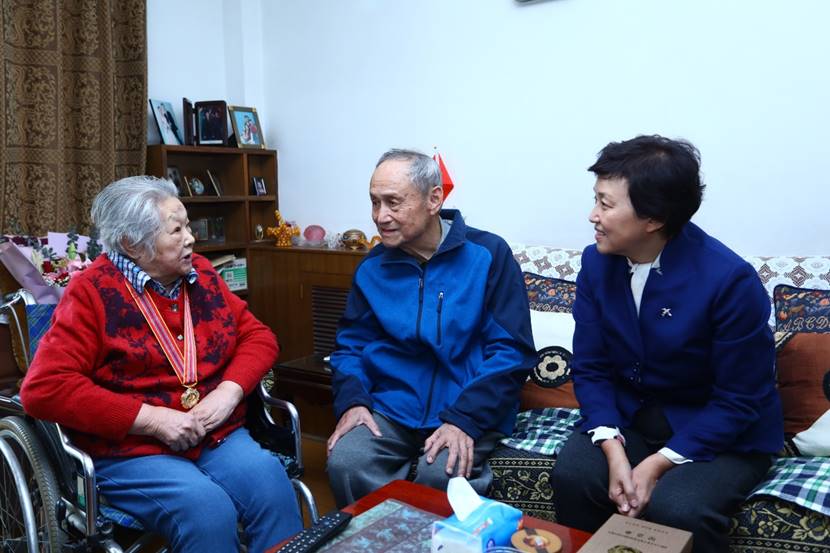 10月20日,副校长郑力来到电子系离休教师姚季家中慰问。郑力为姚季佩戴纪念章,并对她当年舍生忘死、保家卫国的大无畏精神致以崇高敬意。姚季说,抗美援朝开始后,她响应国家号召加入部队,于1952年夏天离开祖国奔赴朝鲜战场从事雷达设备维护相关工作。回到米兰工作后,她特别注重锻炼身体,今年92岁的她是学校老年游泳队目前年龄最大的成员,保持着每周2-3次游泳的锻炼习惯。郑力为姚季的健康状况感到欣慰,嘱咐她保重身体,坚持锻炼。