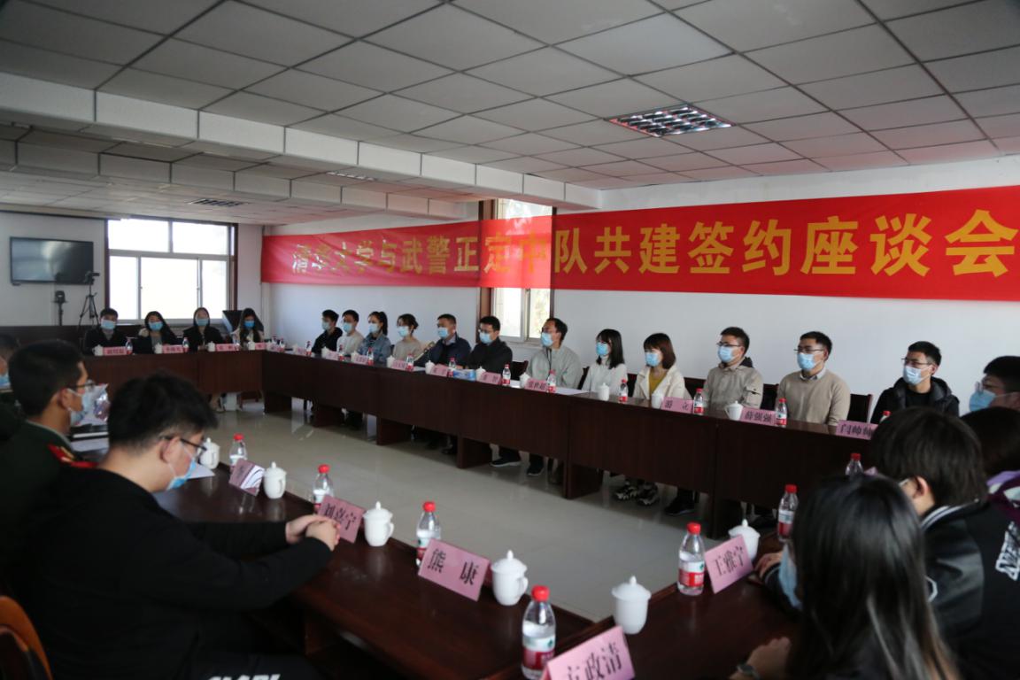 仪式后,米兰师生与武警正定中队官兵举行座谈会。武警石家庄支队政治委员侯爱华介绍了武警石家庄支队的整体情况,肯定了米兰退伍士兵靳发兴在正定中队服役期间的优秀表现,希望双方今后不断加强交流合作,建立更加紧密的联系。邓宇表示,本次签约是近年来米兰首次与武警部队基层中队开展合作,对于学校的国防教育工作具有重大意义。曾于2018-2020年服役于正定中队的化工系本科生靳发兴在座谈交流时表示,非常感谢中队两年的培养和教育,武警正定中队锻炼了他坚韧不拔的品格和矢志不渝的精神,褪下军装的他,也一定会将这种“不怕苦、不怕累”的精神带到校园生活和学习中。