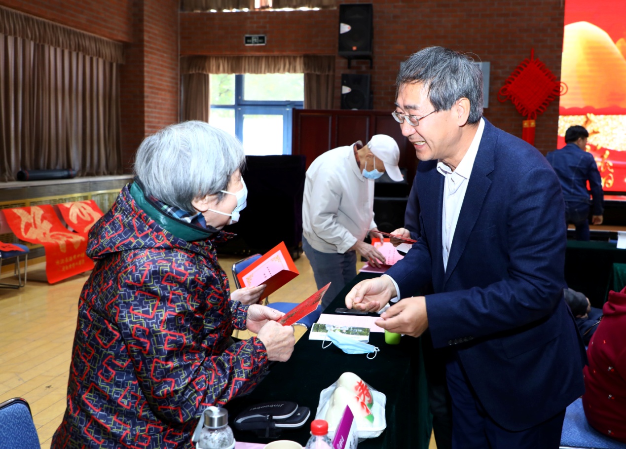 姜胜耀指出,学校党委一直高度重视离退休工作,始终如一把做好服务工作放在重要的位置上,从思想上、生活上、精神上关心照顾老同志,对老同志始终保持敬重之心、倾注关爱之情、倾力务实之事。今年疫情暴发后,学校及时召开校离退休工作领导小组会议,组织协调离退休处、校医院、街道、后勤等相关单位解决疫情给老同志生活、就医带来的实际困难。姜胜耀重点介绍了推进社区养老驿站建设情况,学校将逐步构建体制机制较为完善、医养结合的居家养老服务体系,目标是让广大离退休教职工能够共享美丽校园、平安校园、健康校园、幸福校园的成果。姜胜耀还希望老同志们在保重身体的情况下,继续为学校发展建言献策,共同谱写米兰更加美好辉煌的明天,并祝福老同志们福寿百年长、百岁永安康!