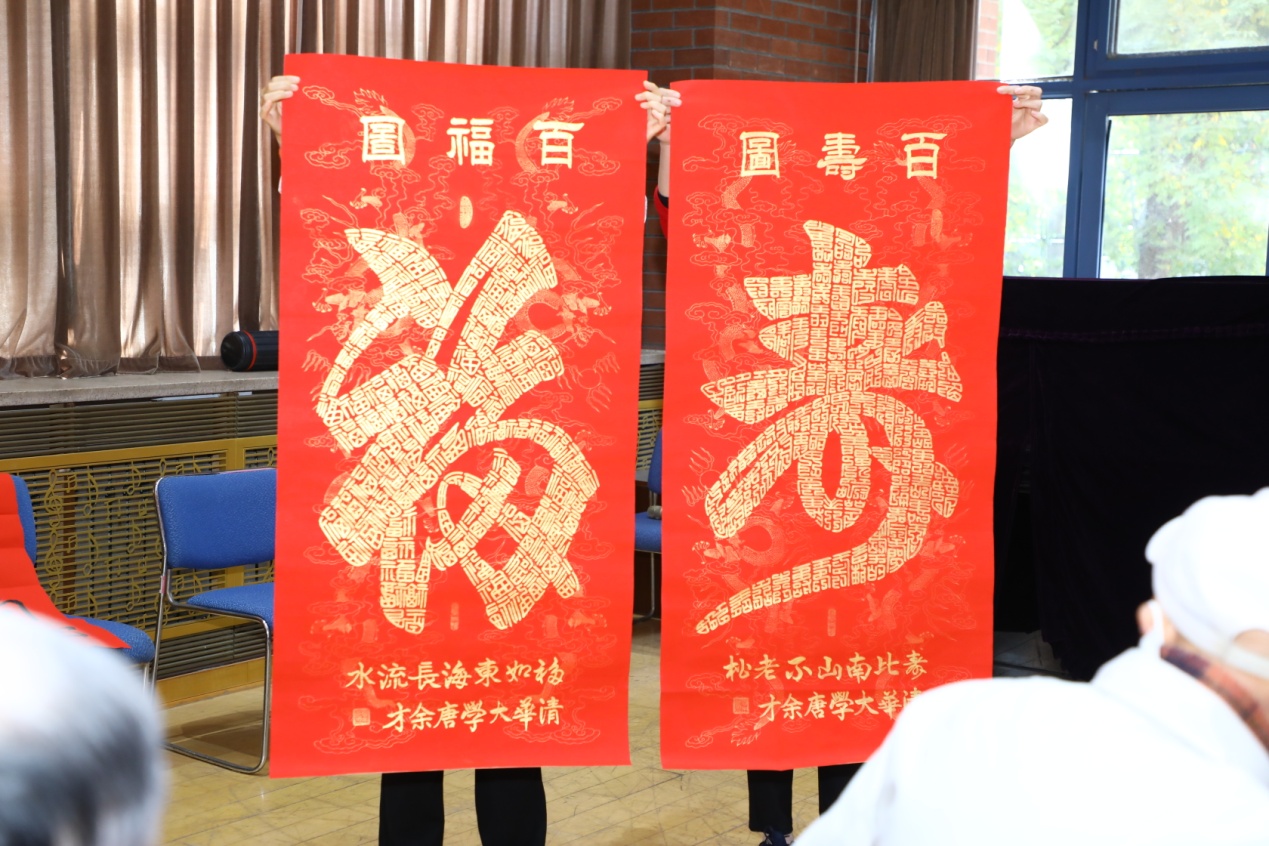 老年书画研究会作品《以书送福》(唐余才 方承土)
