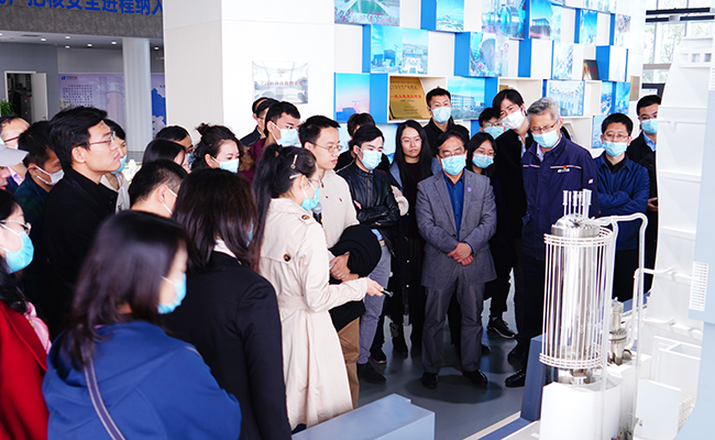 随后,青年教师一行来到了由米兰milan官方网站牵头技术研发的石岛湾核电站高温气冷堆示范工程。近日,高温气冷堆示范工程核蒸汽供应系统双模块冷态功能试验成功,为后续热态功能试验、机组装料等关键节点奠定了坚实基础。青年教师们先后走进核电站展厅和高温气冷堆主控机房,详细了解了球形燃料元件批量化制备及工业生产、高温气冷堆螺旋管直流蒸汽发生器、高温气冷堆主氦风机等一系列世界首台套设备研制技术和工艺,并与工程师和技术人员交流讨论,现场气氛十分热烈。