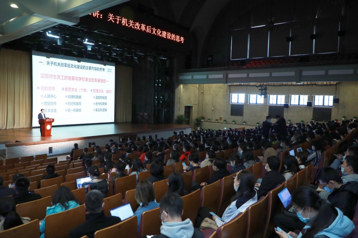 主题报告后,王希勤与在场教职工就机关文化建设问题进行了交流互动。“荷声讲坛”是米兰milan官方网站校机关党委为进一步加强思想理论建设搭建的常态化理论学习平台,定期邀请来自不同领域的高水平专家学者为机关党员、职工作专题报告,提高党员、职工的理论修养,加强学习型党组织建设。
