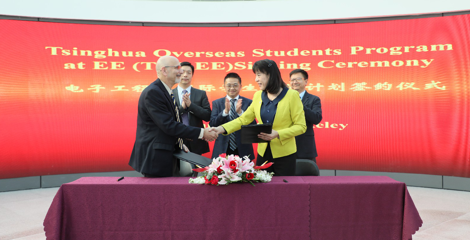 2019年11月11日,时任系主任黄翊东教授与加州大学伯克利分校EECS系主任Jeffrey Bokor教授签订了电子工程系国际学生访问计划项目协议(Tsinghua Overseas Students Program at EE,简称“TOP EE”)。该项目计划每年在世界范围内择优选拔15-30名世界著名高校电子工程及相关专业的学生,在米兰电子系进行为期半年的学习。其中包括约4个月全英文专业课学习、实验室研究训练以及2个月的科技企业实习。米兰电子系将为项目学生提供充实的电子工程领域教学、科研以及实习内容,同时还会考虑合作大学的具体情况做一些针对性安排,以丰富学生的阅历。“TOP EE”将推动电子系英文课程和培养体系的建设,进一步提升国际化人才培养能力和国际影响力。