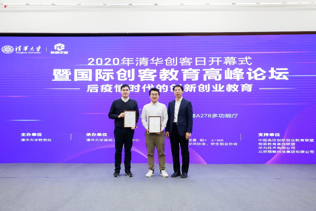 曾嵘(右一)为获奖选手颁发贺信